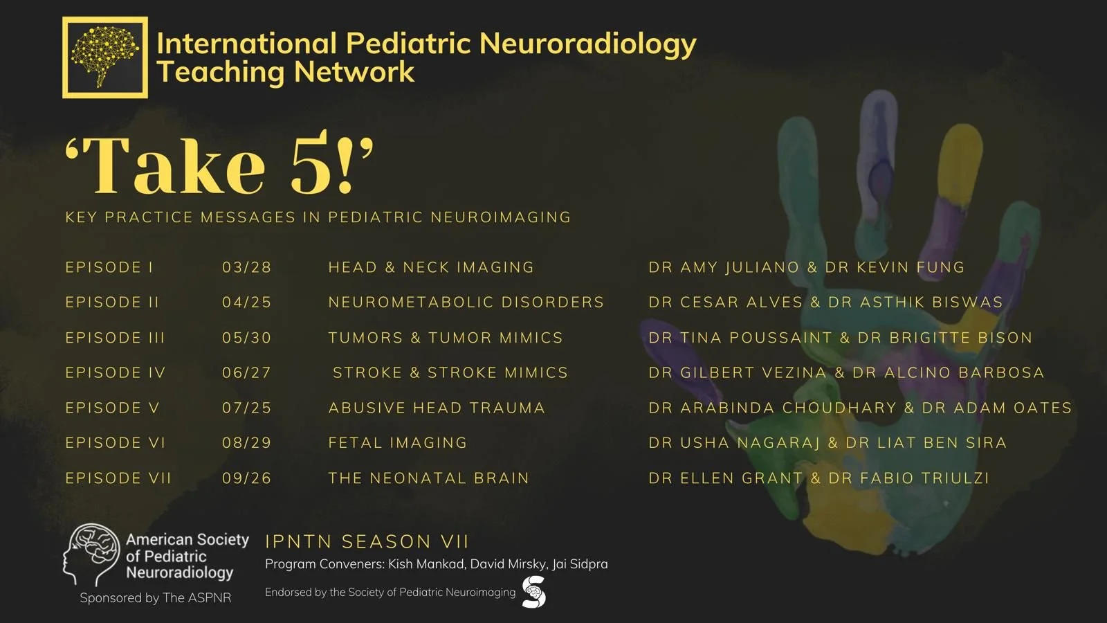 This educational initiative is a collaborative effort between the Society of Pediatric Neuroimaging (SPIN) and the American Society of Pediatric Neuroradiology(ASPNR), bringing together global expertise to enhance learning and clinical practice.