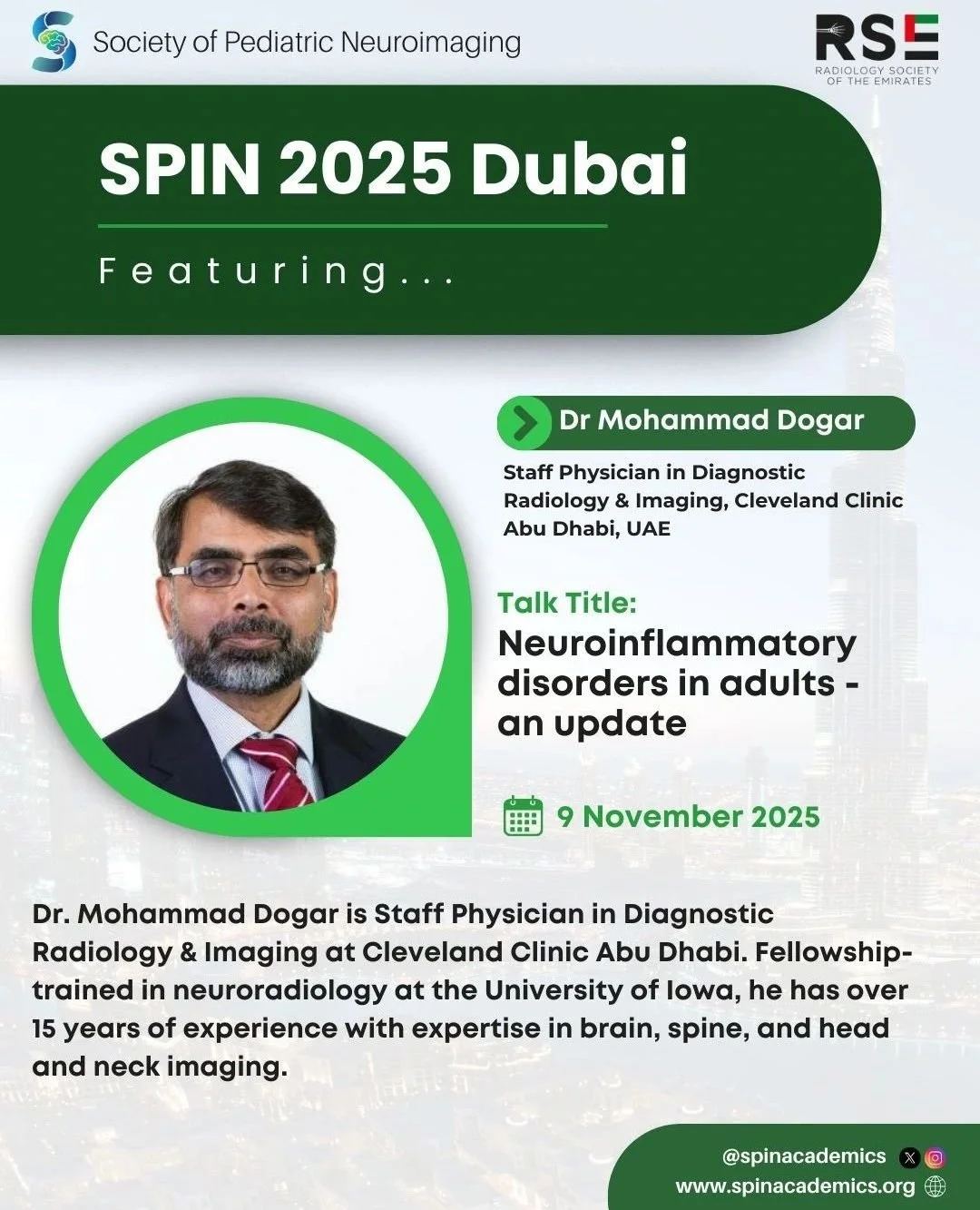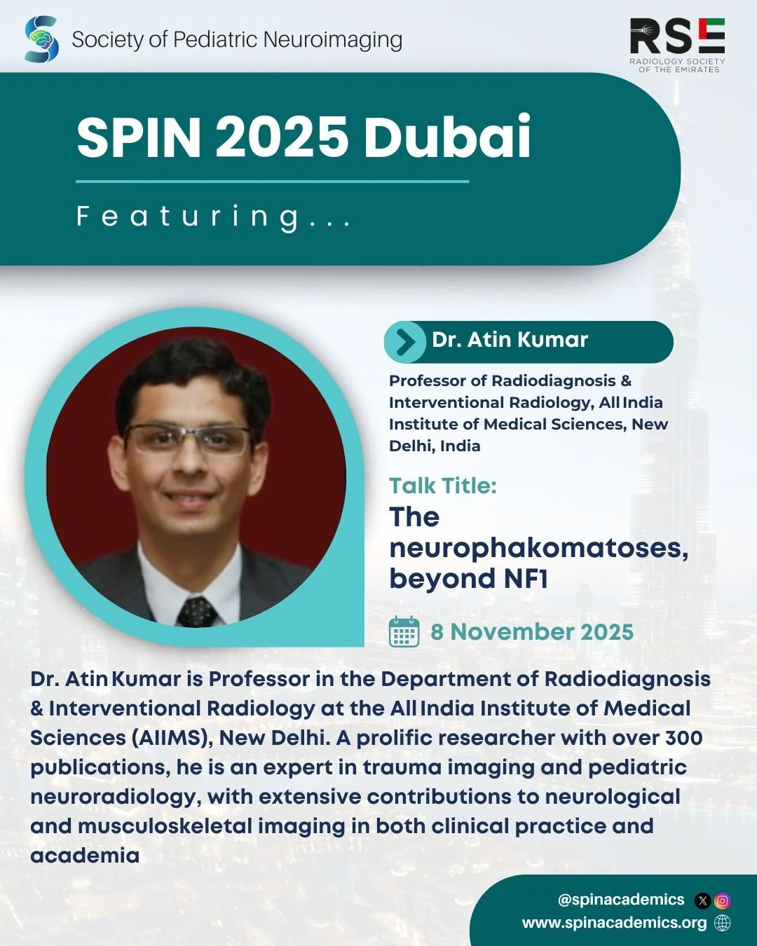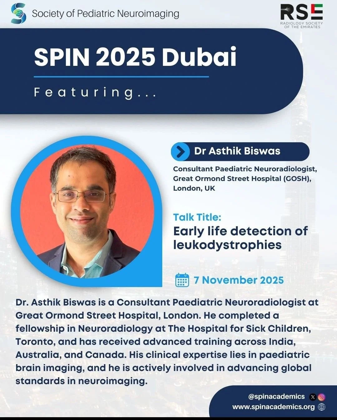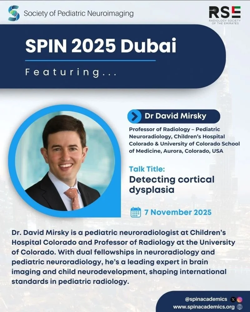 Join the Society of Pediatric Neuroimaging (SPIN) for a groundbreaking in-person conference in Dubai, 07–09 November 2025, in partnership with the Radiology Society of Emirates.